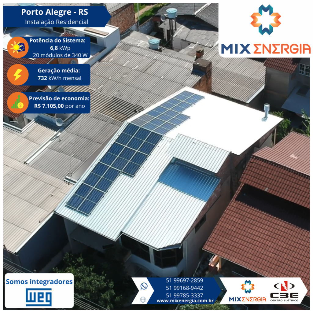 Projeto de micro geração de energia solar em imóvel residencial na cidade de Porto Alegre, RS.