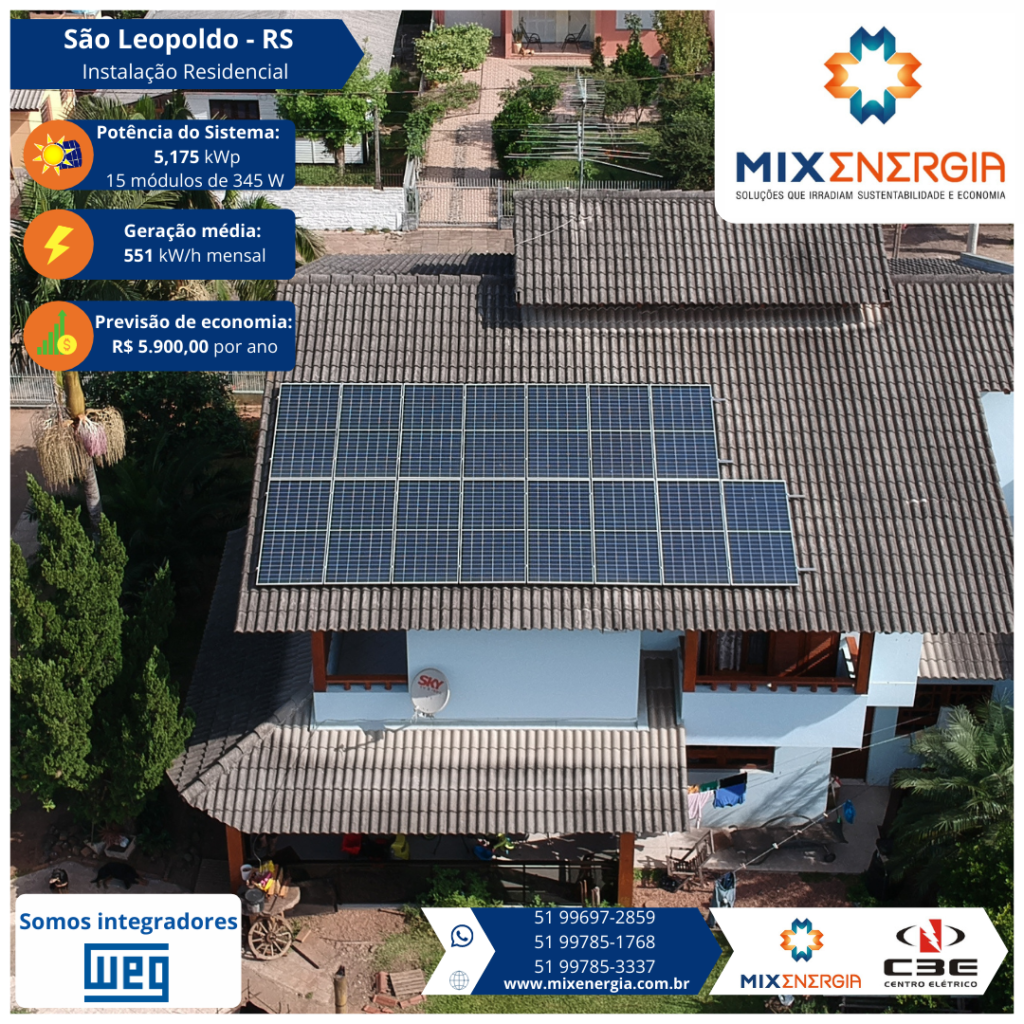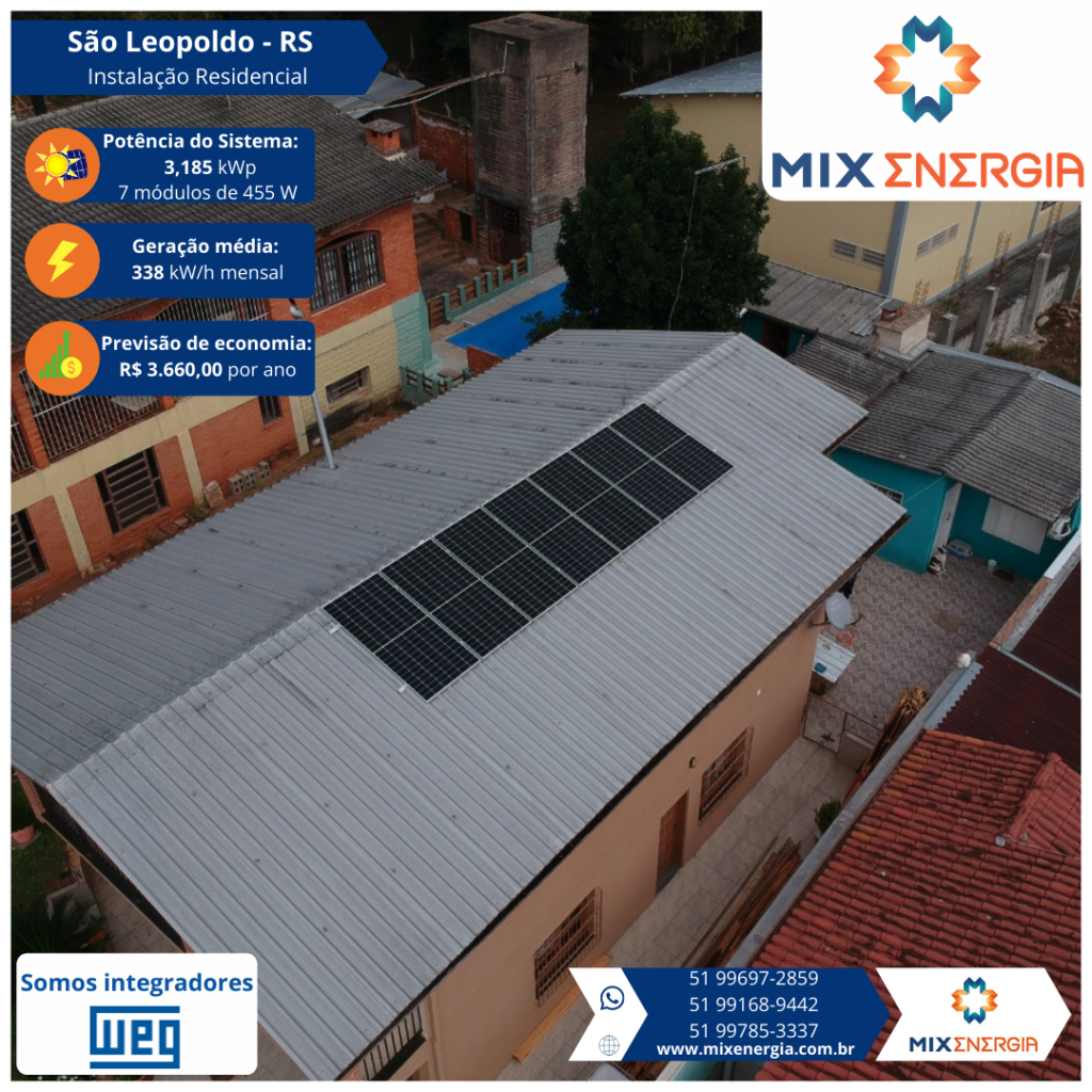 Projeto de micro geração de energia solar em imóvel residencial na cidade de São Leopoldo RS.
