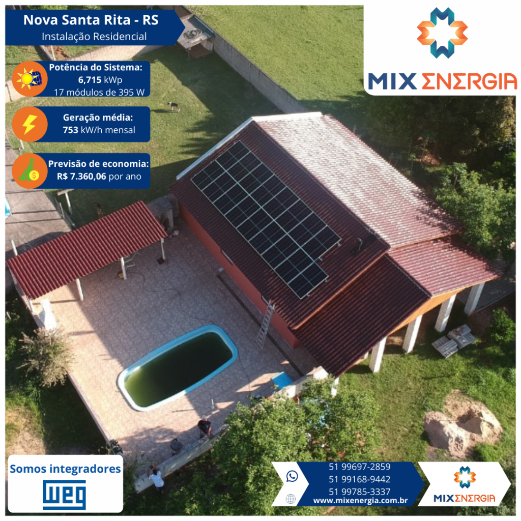 Projeto de micro geração de energia solar em imóvel residencial na cidade de Nova Santa Rita, RS.