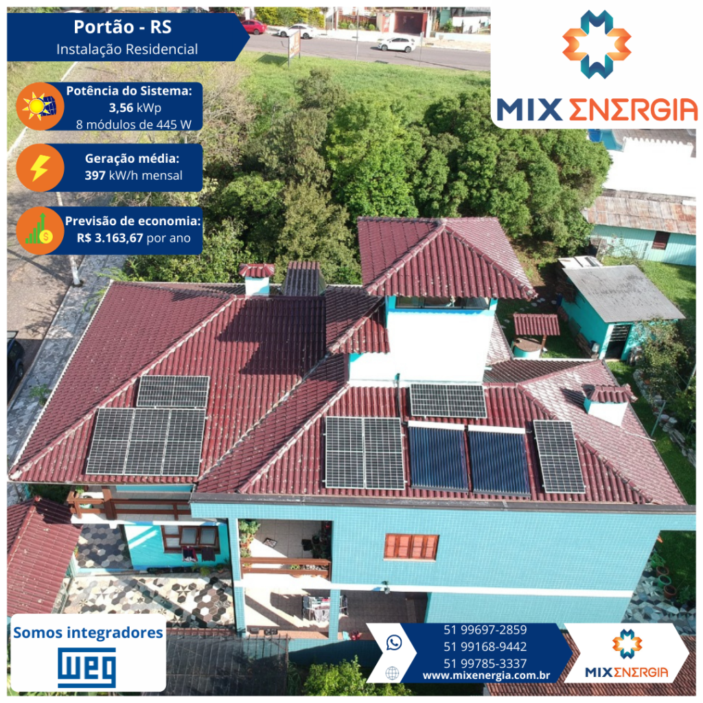 A instalação foi realizada pela empresa C3E, acompanhada pela Mix Energia.