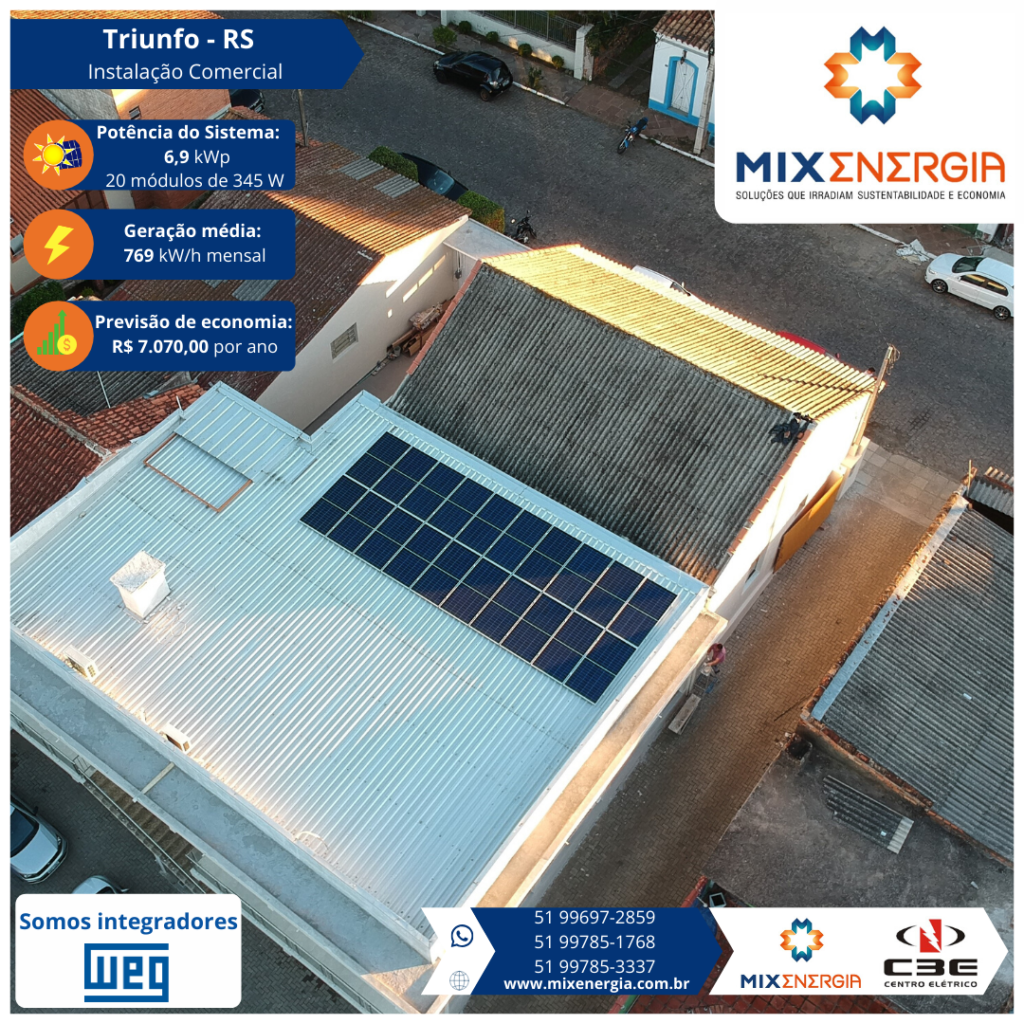 Projeto de micro geração de energia solar em imóvel comercial na cidade de Triunfo, RS.