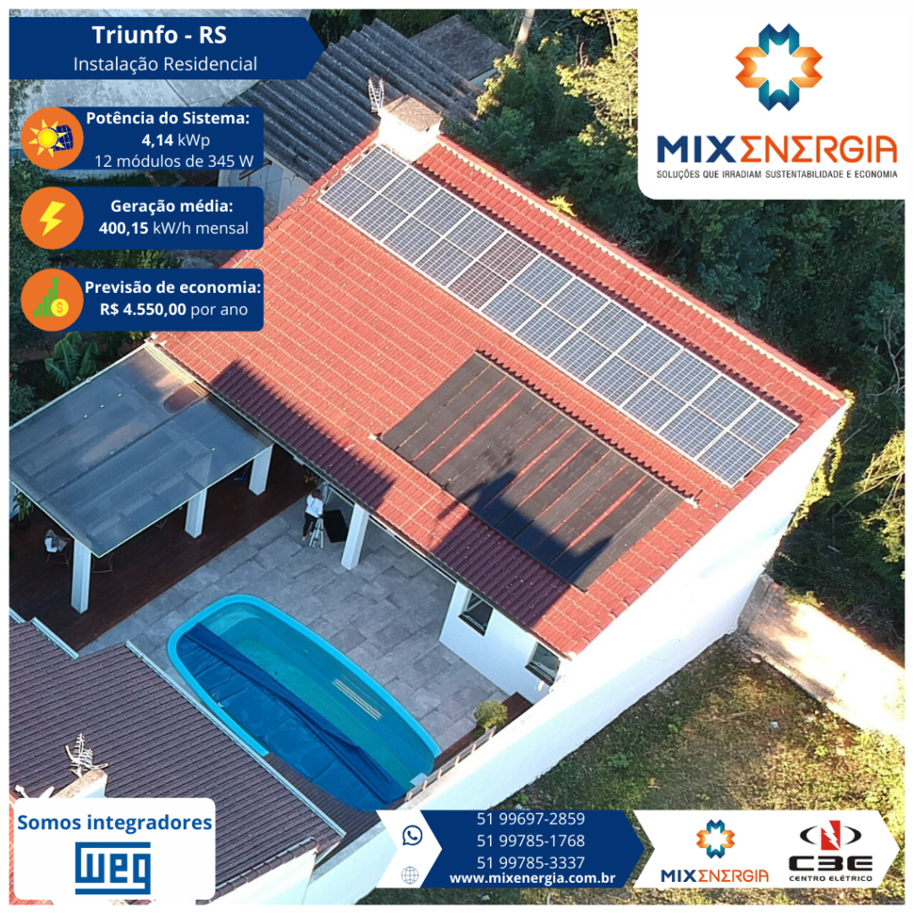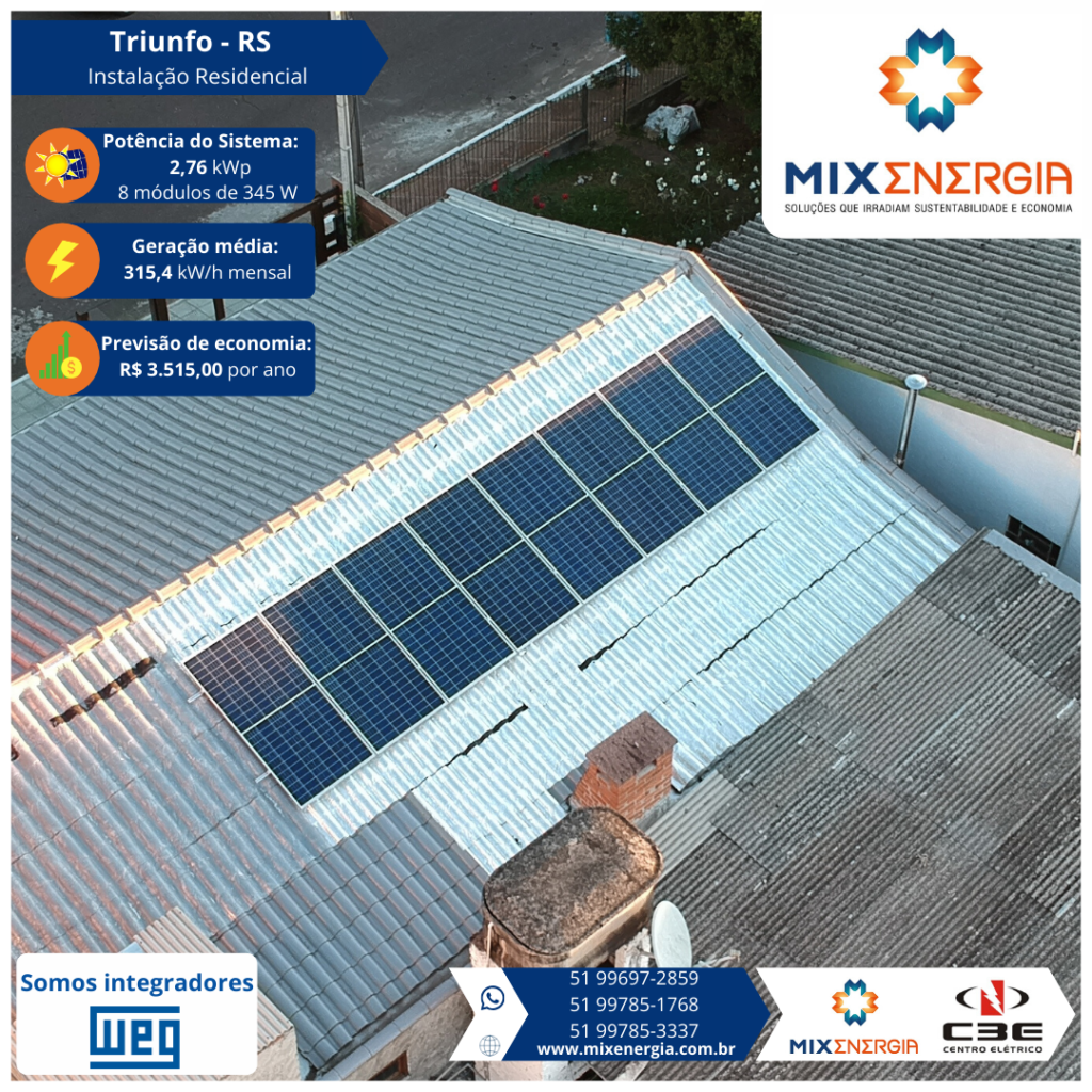 Projeto de micro geração de energia solar em imóvel residencial na cidade de Triunfo, RS.
