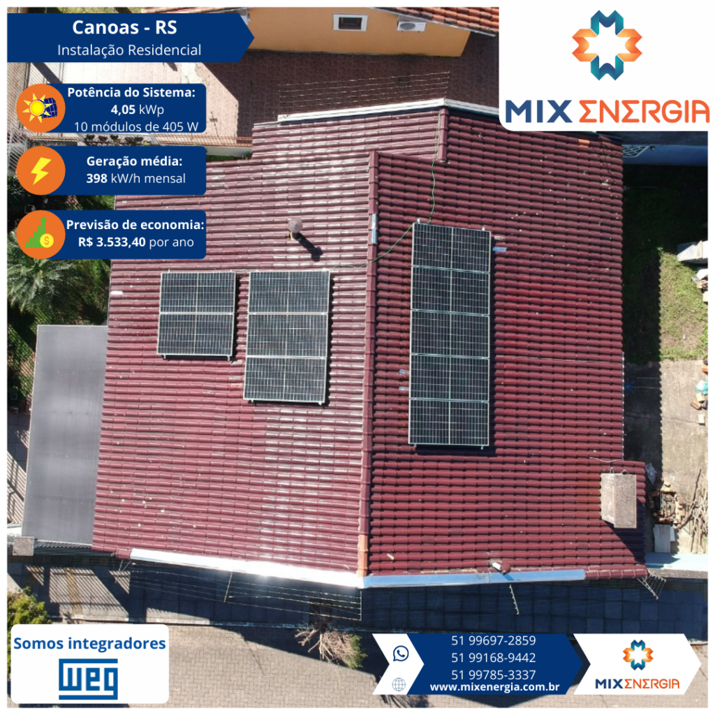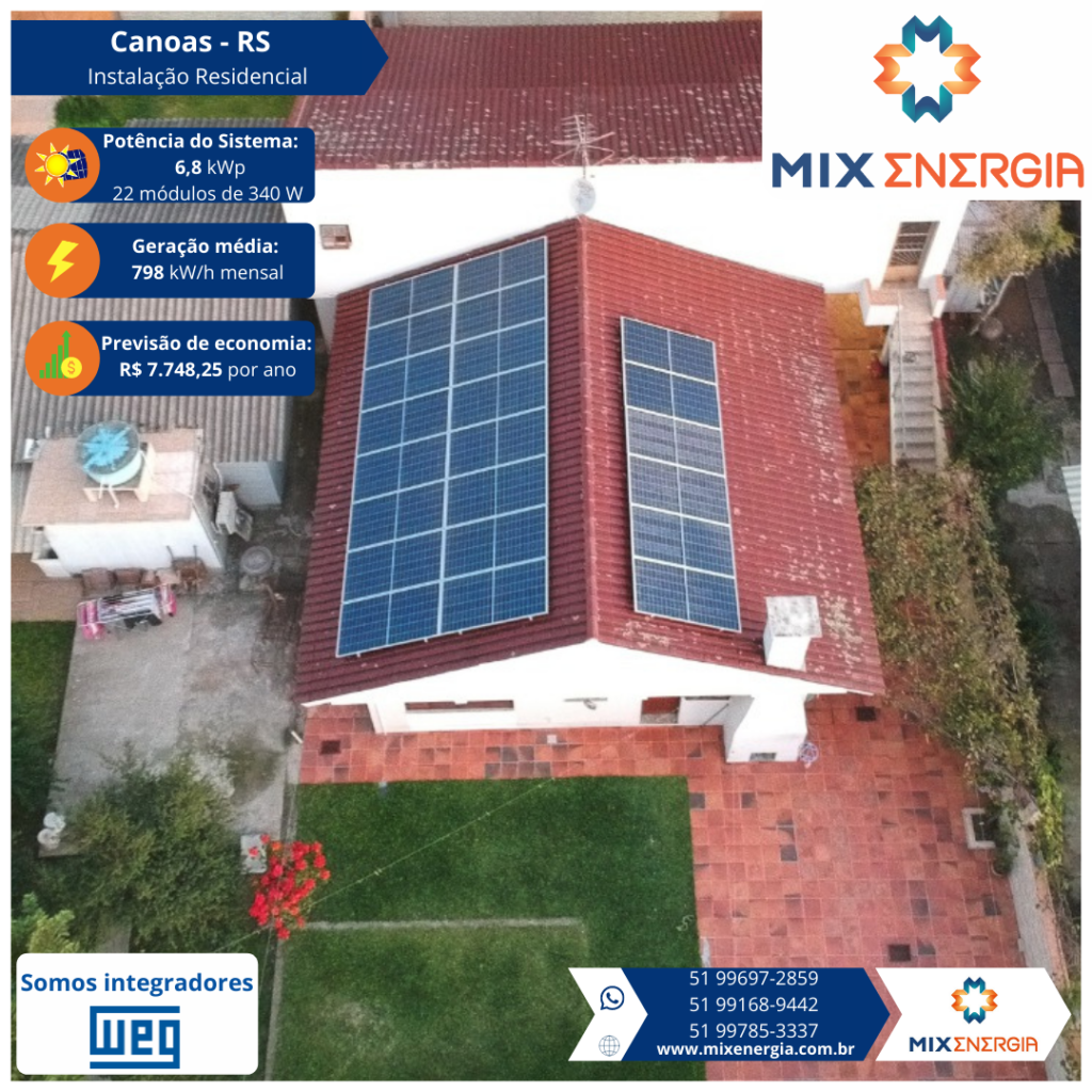 Projeto de micro geração de energia em imóvel residencial na cidade de Canoas, RS.