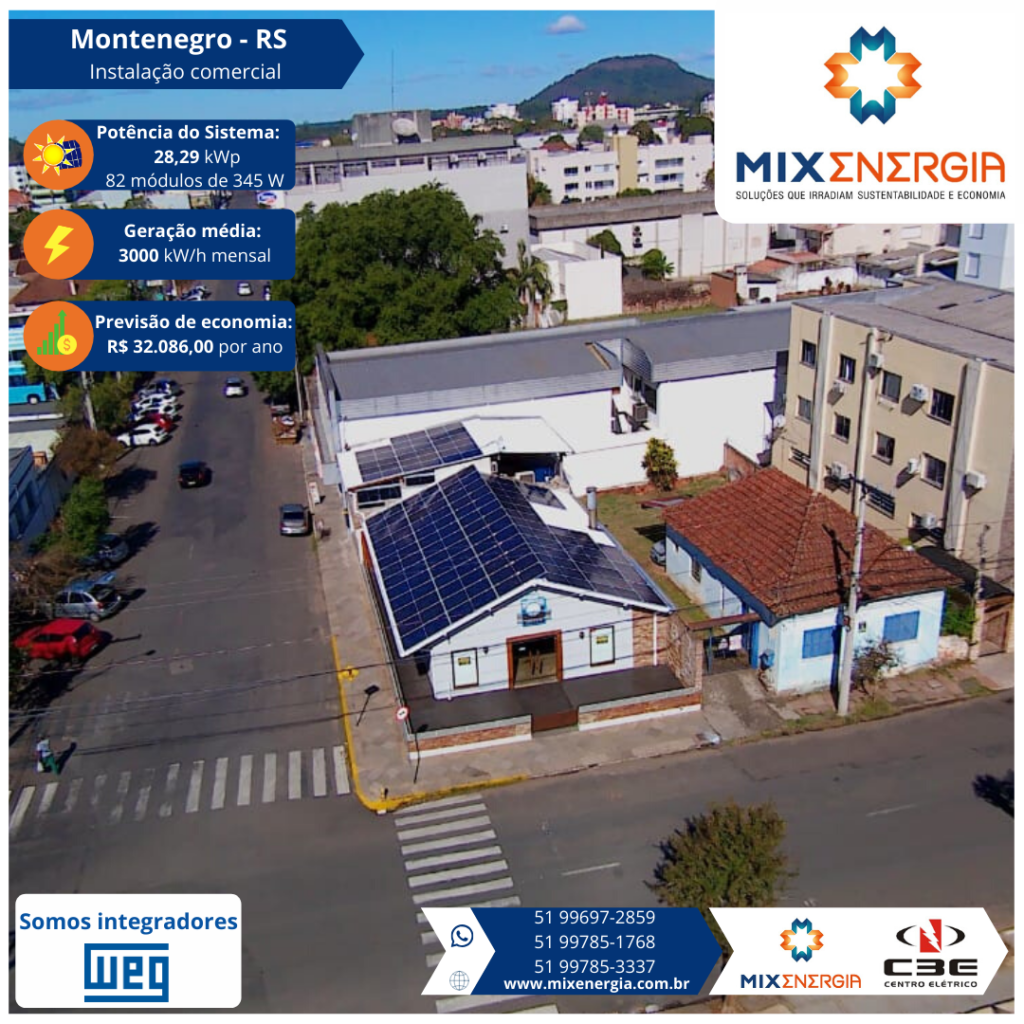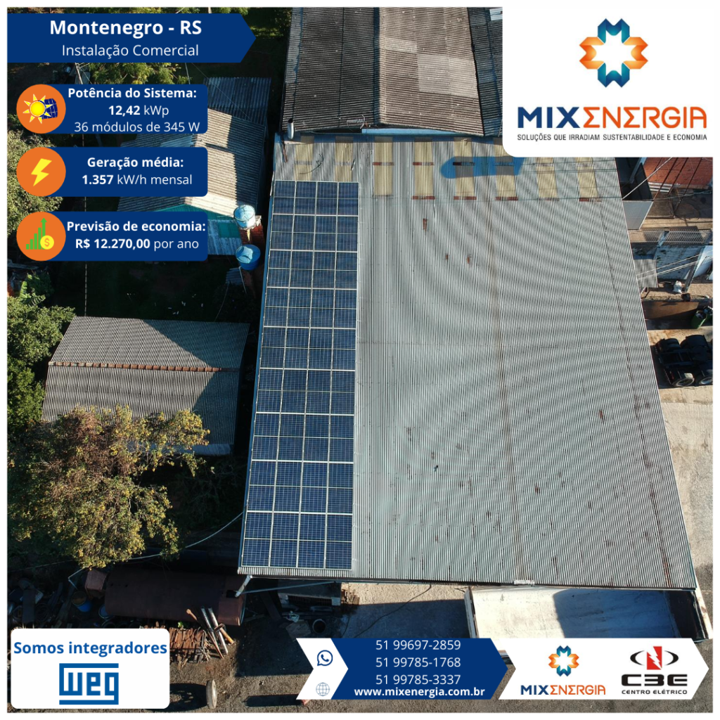 Projeto de micro geração de energia solar em imóvel comercial na cidade de Montenegro, RS.