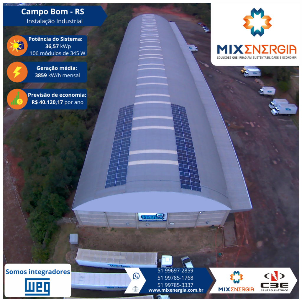 Projeto de micro geração de energia solar em centro de distribuição de Campo Bom, RS.