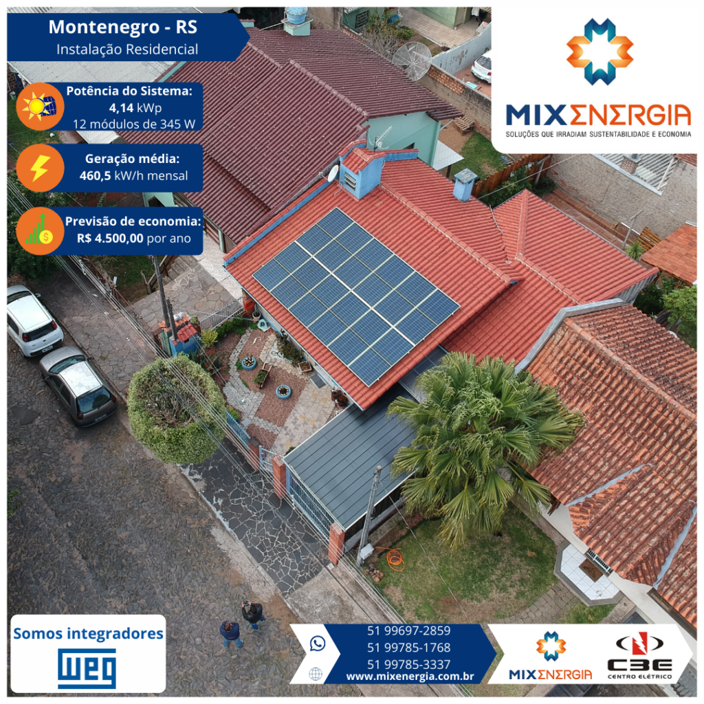 Projeto de micro geração de energia solar em imóvel residencial na cidade de Montenegro, RS.