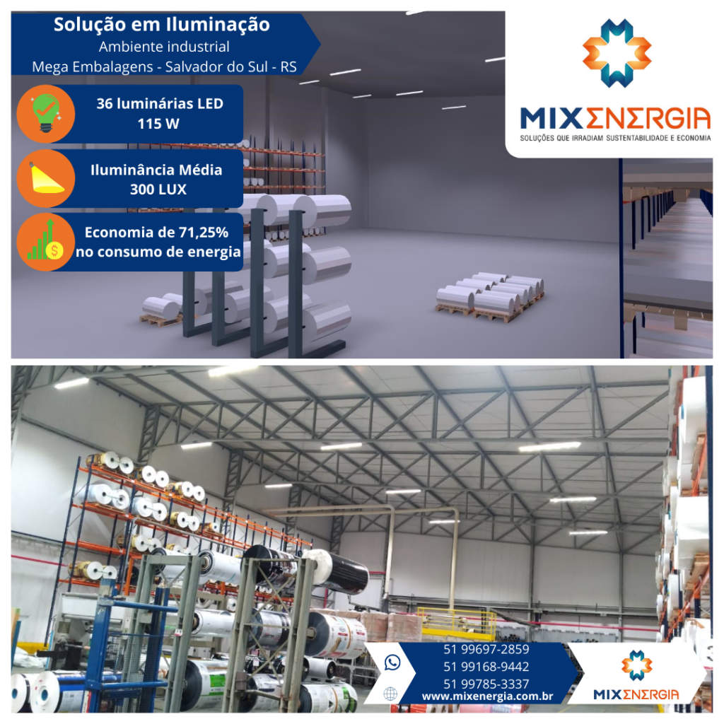 Solução em iluminação para empresa Mega Embalagens, de Salvador do Sul, RS.