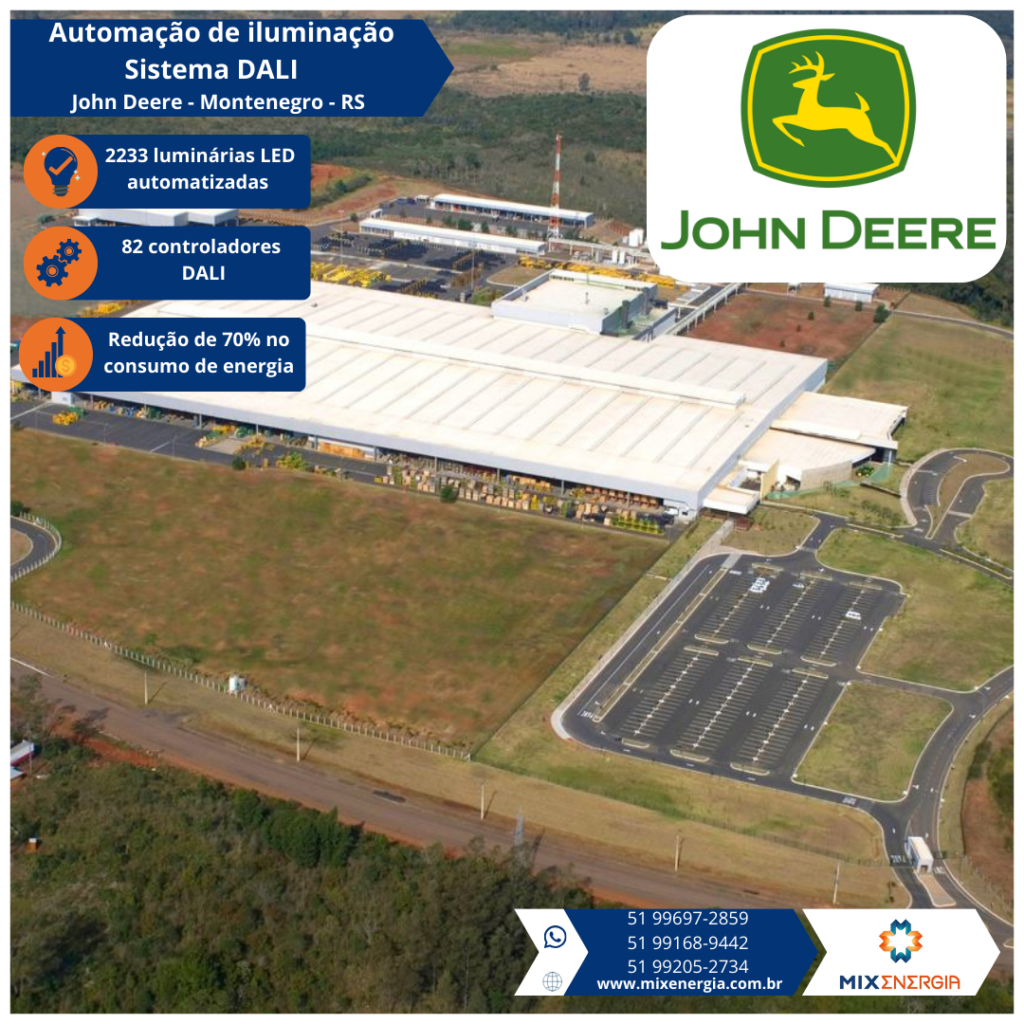 A Mix Energia realizou um grande projeto de substituição e automação da iluminação de toda a fábrica da John Deere de Montenegro, RS.